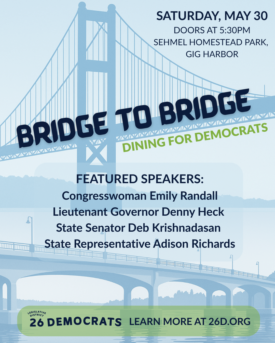 Looking for other ways to get involved? Check out our news feed for information about what’s happening around the 26th LD. Check out our Action Center!
