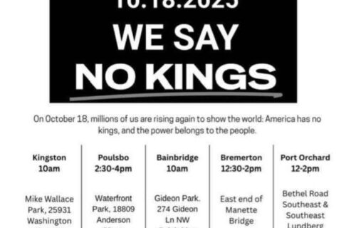 Community EventsIndivisible Gig Harbor is organizing a No Kings Sign waving event on October 18 from Noon-2PM, at the corners of Pt. Fosdick and Olympic Drive.